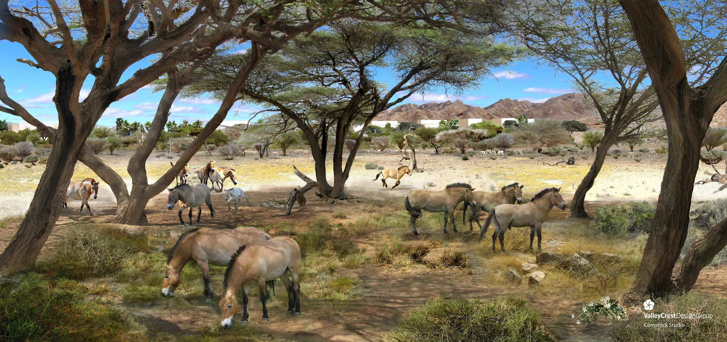 Comstock specializes in the replication of natural habitats and specific biomes for display within living environments compatible for the health and safety of animals and guests. While creating an exhibit landscape concept, Comstock researches the animal's natural environment and try to replicate that as faithfully as possible within the constraints of the exhibit area. A majority of the focus for these projects is on seeking out information about the animal's behavior as it relates to containment (i.e. knowing how far an animal can jump, whether it can swim, and how strong it is to ensure that it is safely housed in the exhibit and separated from members of the public). While working on an exhibit, a Comstock collaborates with curators, keepers, zoo educators, and veterinarians to determine the best way to accommodate the needs of both animals and visitors.